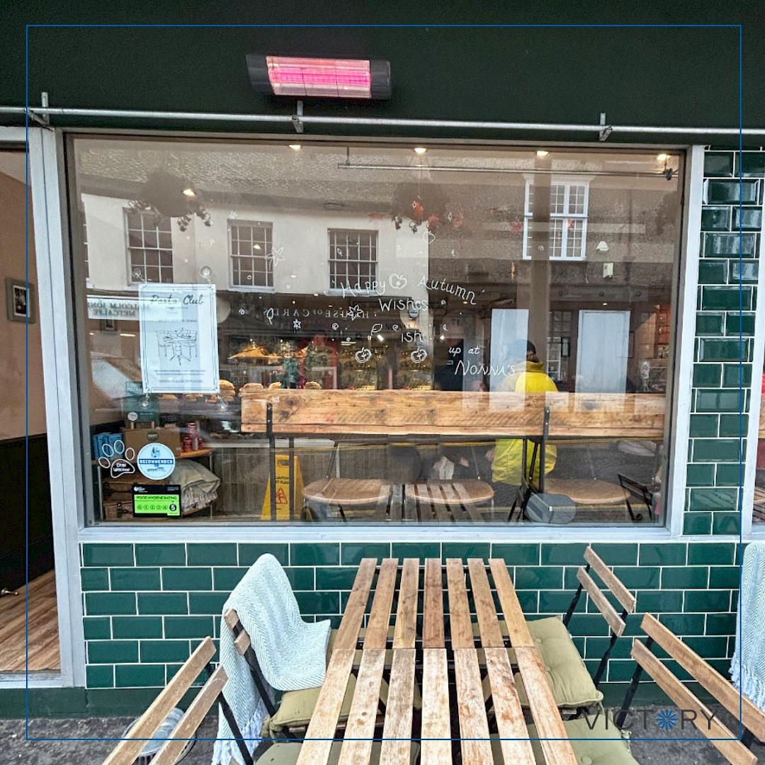 "We wanted to keep our outdoor area open and inviting, even in the colder months, but we weren't sure where to start with heating. The team at Victory helped us from start to finish, tailoring heaters to suit both our deli's layout and the way the staff use the space. Thanks to their support, our outdoor space is now warm and welcoming all year round – and we've seen an increase in revenue as customers are now happy to take an outdoor seat when we're at capacity indoors; even in cold weather."